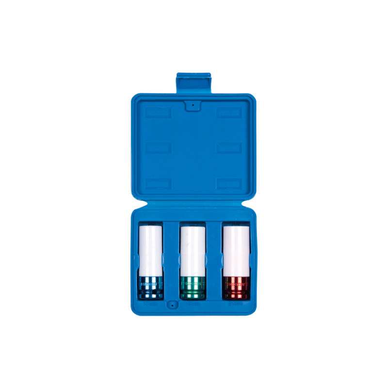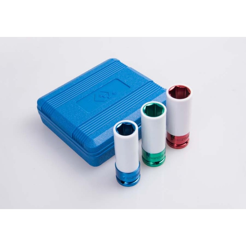 KING TONY 4405MX Jest zestawem 6-kątnych nasadek udarowych 1/2". W zestawie znajdują się 3 długie nasadki z tuleją zabezpieczającą w rozmiarach 17, 19, 21 mm. Klucze wykonane są ze stali chromowo molibdenowej. Narzędzia spełniają normę DIN 3121. Zestaw posiada plastikową skrzynkę.