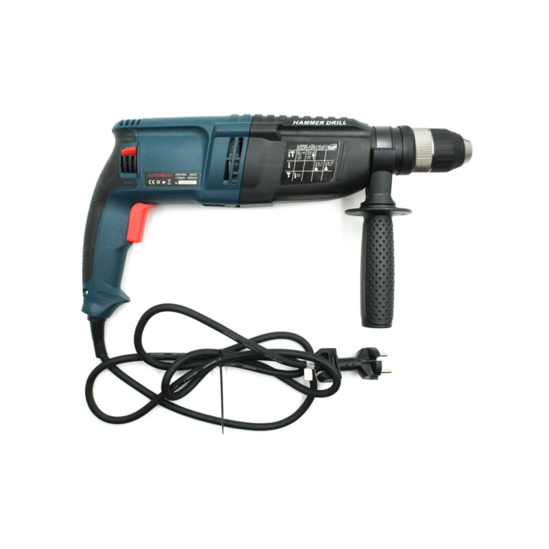 Dzięki silnikowi o mocy 2500 W, urządzenie zapewnia skuteczne wiercenie w betonie, cegle, murze i kamieniu, a funkcja udaru pozwala bez problemu radzić sobie z twardymi materiałami.