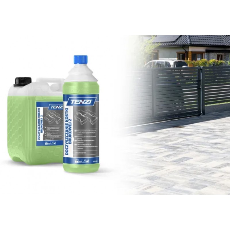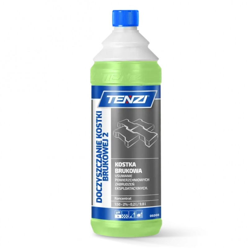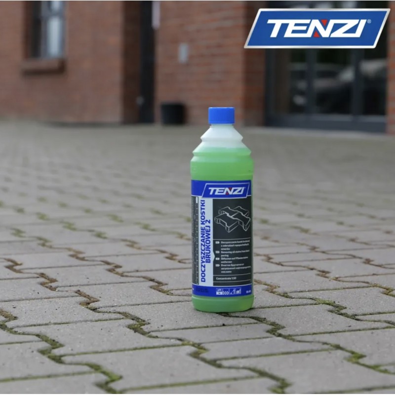 TENZI DOCZYSZCZANIE KOSTKI BRUKOWEJ 2 to profesjonalny koncentrat do czyszczenia kostki brukowej, przeznaczony do usuwania zabrudzeń eksploatacyjnych z nawierzchni zewnętrznych. Preparat skutecznie rozpuszcza tłuszcze, oleje oraz inne trudne zanieczyszczenia powstające podczas codziennego użytkowania podjazdów, chodników czy tarasów.