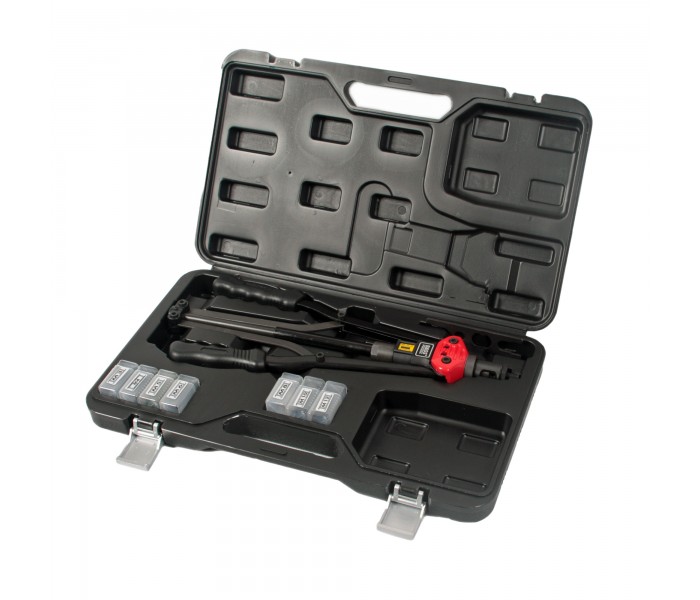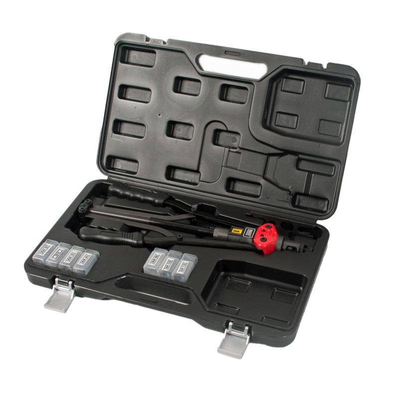 Nitownica Bass Polska BP-2904 to wytrzymałe i precyzyjne narzędzie do zaciskania gwintowanych tulei (nitonakrętek) w elementach cienkościennych. Umożliwia łączenie materiałów i tworzenie trwałych połączeń gwintowanych w jednym kroku. Dzięki dźwigniowej konstrukcji i długim ramionom (440 mm), praca z nią jest szybka i wymaga minimalnego wysiłku.