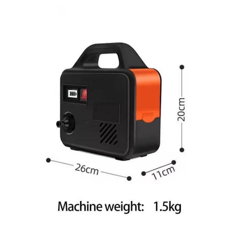 Panel sterujący z czytelnymi wskaźnikami stanu naładowania akumulatora umożliwia kontrolę pracy pompy, a przycisk włącznika zabezpiecza przed przypadkowym uruchomieniem. Zintegrowana osłona chroni silnik i elektronikę przed wilgocią oraz drobnymi zanieczyszczeniami.