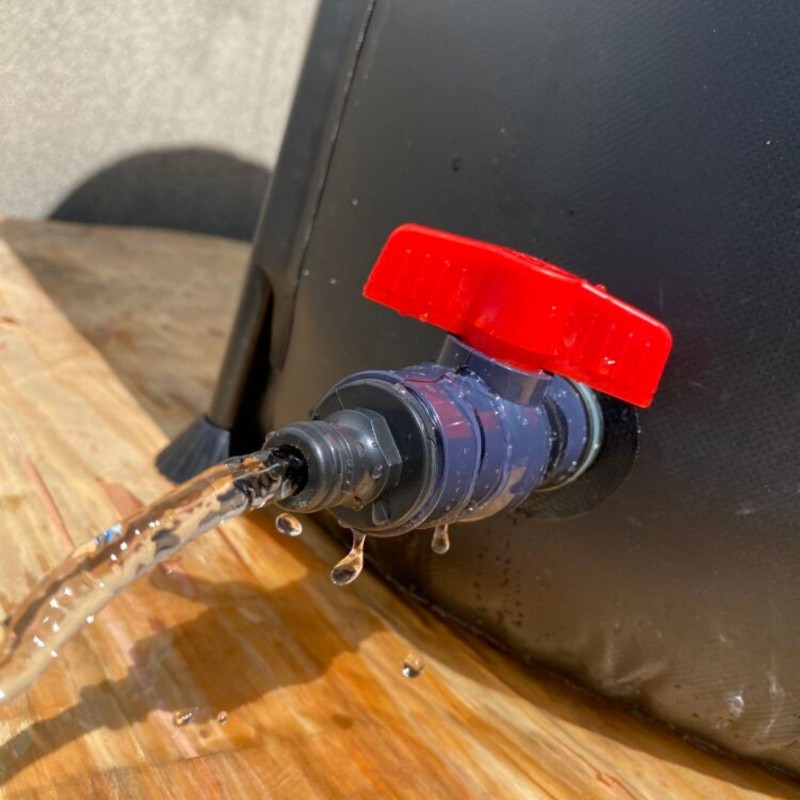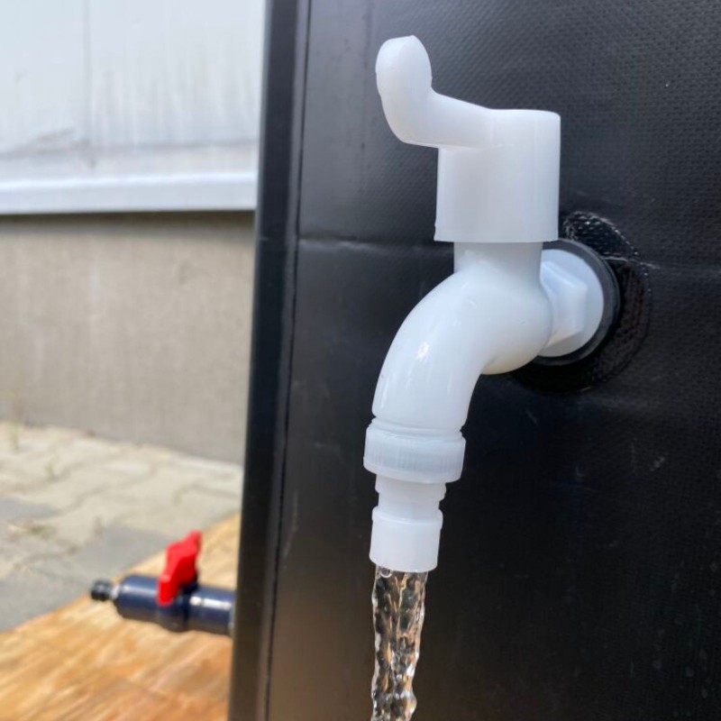 Czarny kolor zbiornika na deszczówkę sprawia, że pojemnik dyskretnie wtapia się w otoczenie domu lub ogrodu, zachowując elegancki wygląd.