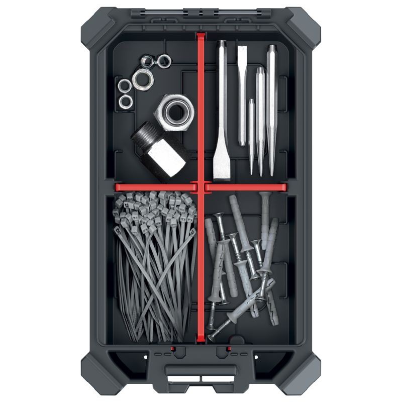 Kistenberg MSX 25 Niski S to praktyczny, kompaktowy organizer narzędziowy zaprojektowany z myślą o osobach, które potrzebują wygodnego i trwałego systemu do przechowywania drobnych akcesoriów, śrub, kołków, końcówek, wkrętów czy elementów montażowych. Dzięki przemyślanej konstrukcji oraz wysokiej jakości materiałom świetnie sprawdza się w warsztacie, garażu, na budowie oraz w mobilnej pracy serwisowej.