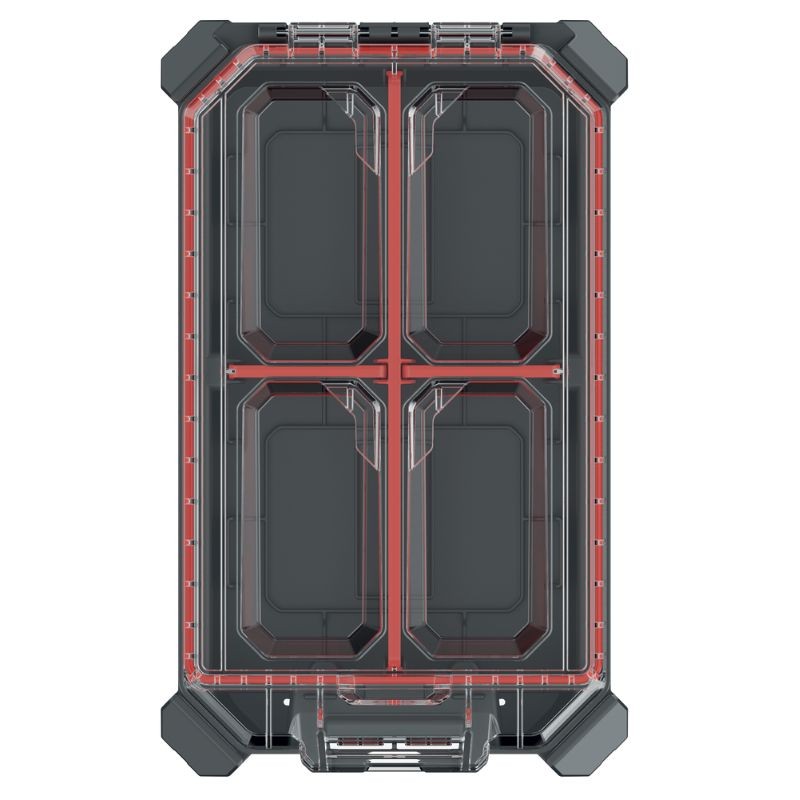 Organizer ma wymiary 228 × 368 × 77 mm, co czyni go poręcznym, łatwym do transportu i jednocześnie wystarczająco pojemnym, aby pomieścić najważniejsze drobne elementy niezbędne podczas pracy.
